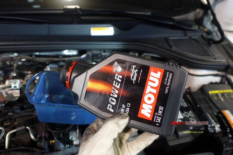 신품필터도 교체하고 오일은 모튤 파워V 5W30 제품으로 주입 및 레벨링해드렸습니다.