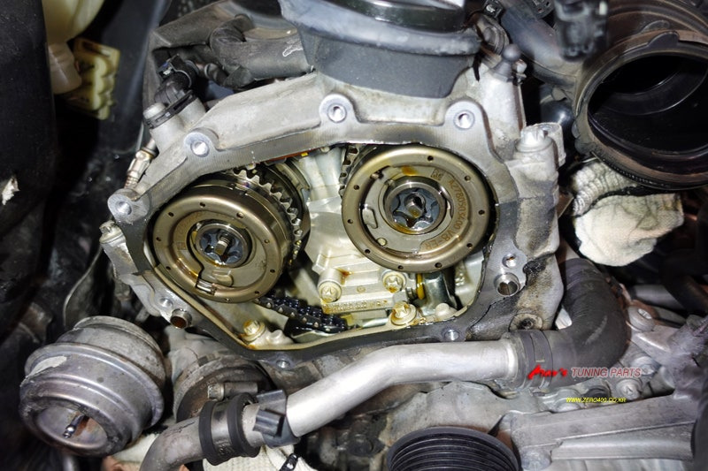 부품수급중에 캠어저스트 커버 작업먼저 진행~ 볼트풀고 살짝만 힘을줘도 떨어지는데...접착력이 거의 없다고 봐야죠.