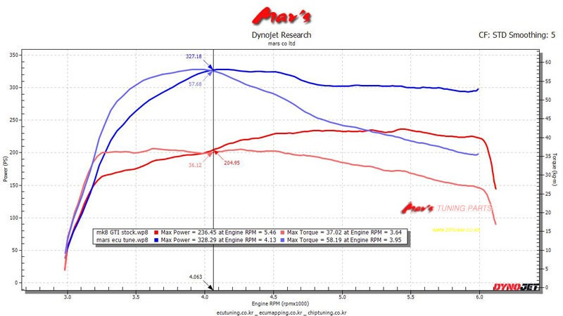 마르스 ECU 출력맵핑 328.29 hp, 토크 58.19 kg.m 로