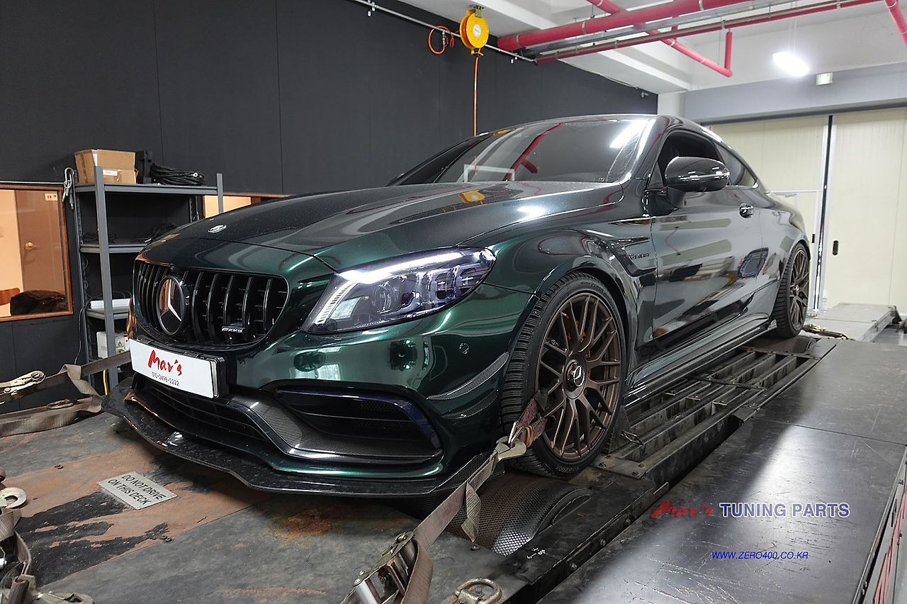 2020 메르세데스-AMG W205 C63 S 쿠페 차량 최종 휠마력 측정 그래프가 나왔습니다.