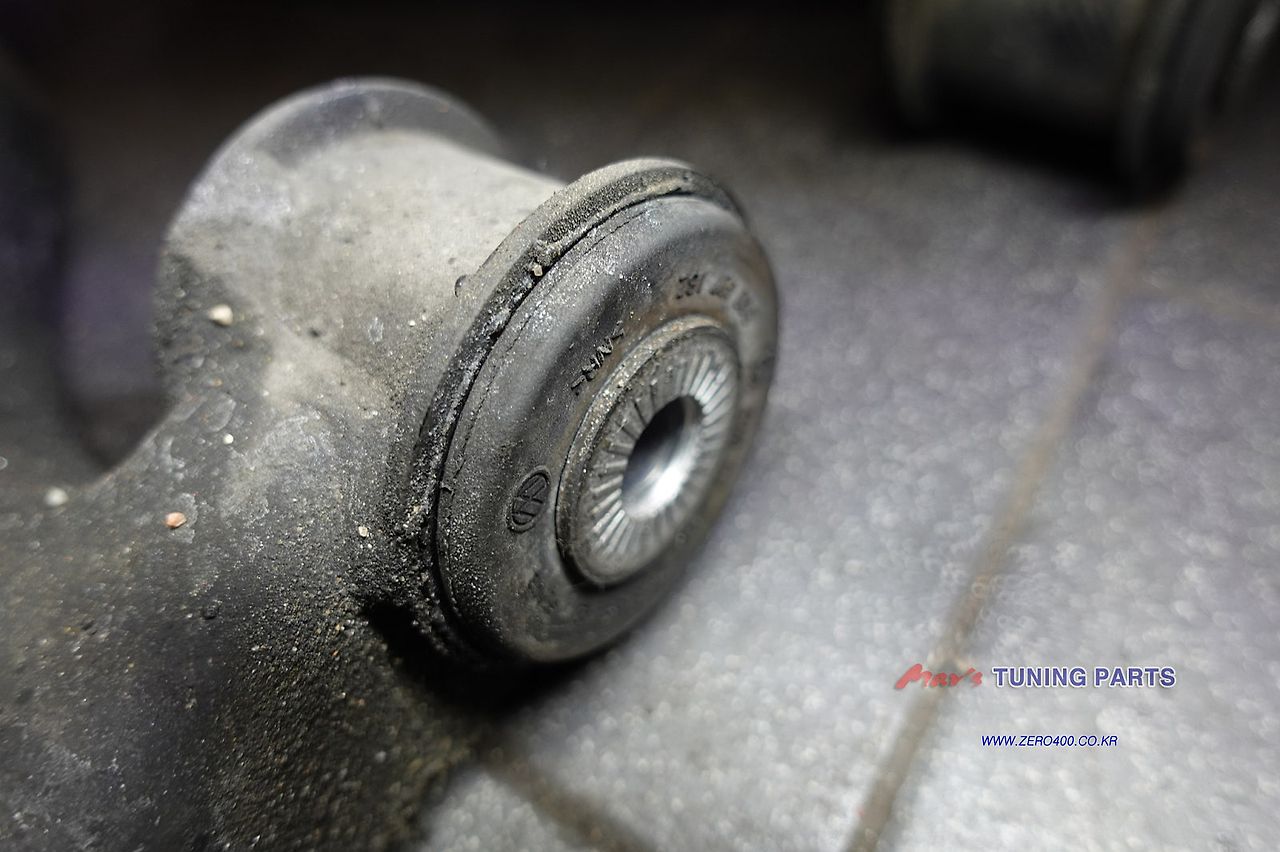 탈거된 프론트 로워암에서 순정 부싱을 제거해주고