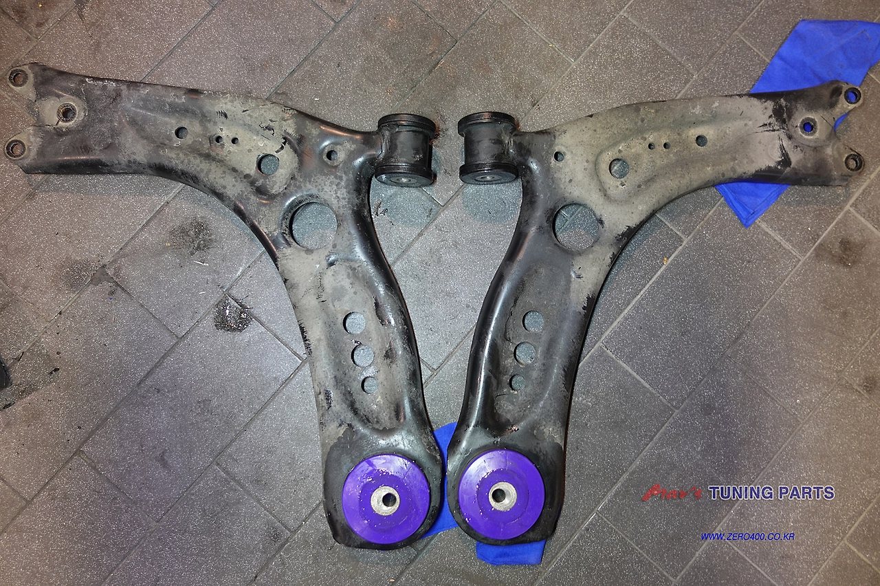 순정형 로워암을 계속 쓰시다보면 부싱의 내구성이 떨어지면서 유격으로 인해 한쪽으로 쏠리며