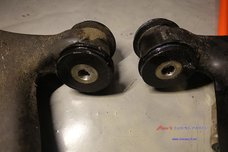 로워암에서 수명이 다한 순정 부싱을 깔끔하게 제거해주고 이물질도 깨끗하게 소지!