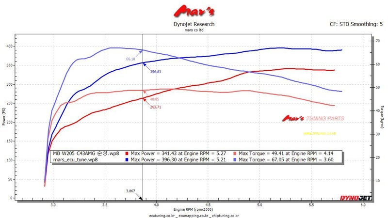 마르스 ECU + TCU 맵핑 396.30 hp, 토크 67.05 kg.m 로